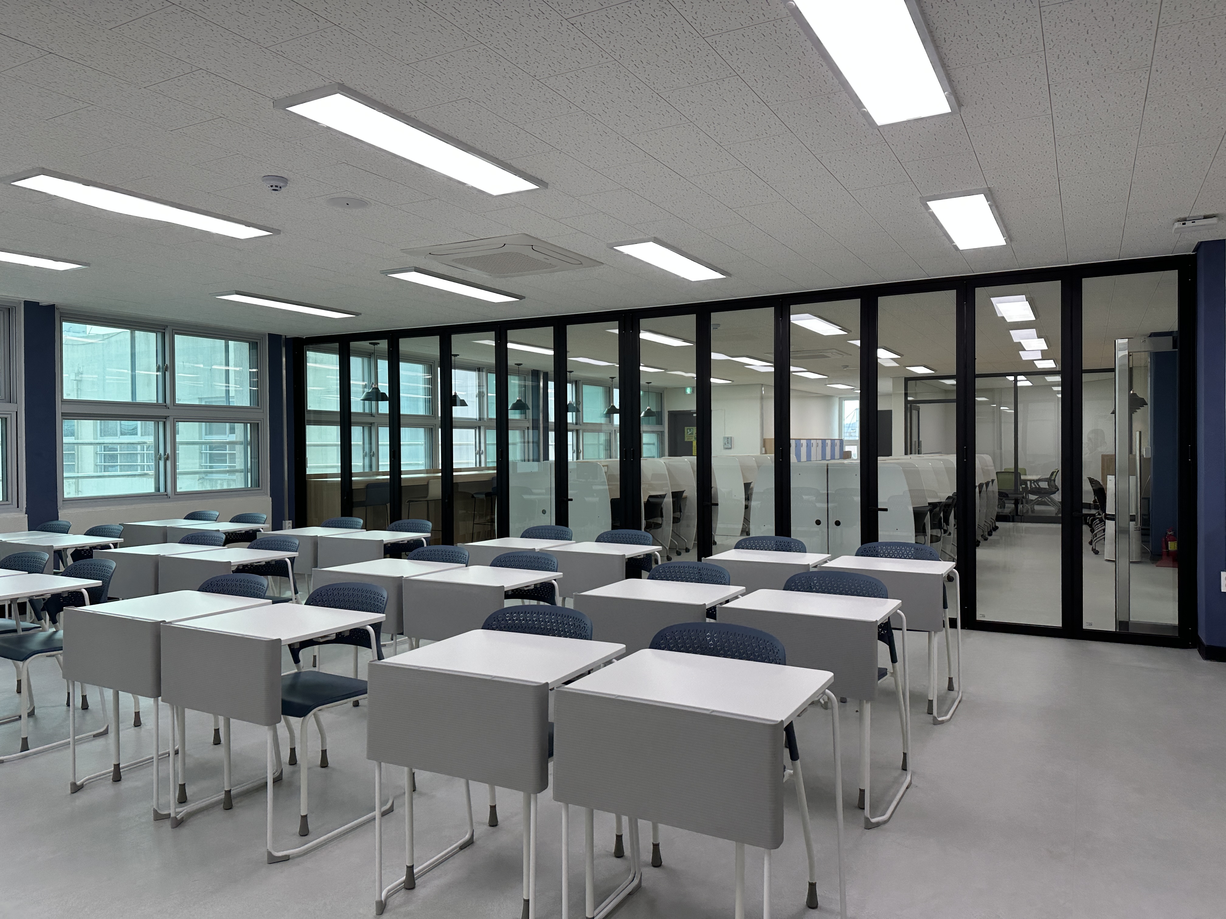 2층과 3층은 학습 공간으로 조성했으며, 선택 과목 이동 수업을 위한 강의실과 공강 시간 및 야간 자기주도학습을 위한 학습 카페를 구축했다. 학습 카페는 학생들의 다양한 학습 스타일을 반영하여 1인용 좌석, 창가형 좌석, 모둠 학습형 좌석 등을 갖추었으며, 강의실과 학습 카페를 가변형 공간으로 구성해 자기주도학습 시간에 따라 유연하게 활용할 수 있도록 했다. 또한, 일반 교실 외의 강의실을 확보함으로써 고교학점제 시행에 따른 학생들의 과목 선택권을 확대하고, 이동 수업 시 학생들의 동선과 편의성을 개선했다.